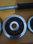 出售實心純鐵啞鈴一對圖片里啞鈴片每種4片總重44斤啞鈴桿2個固定螺絲5個價格50元